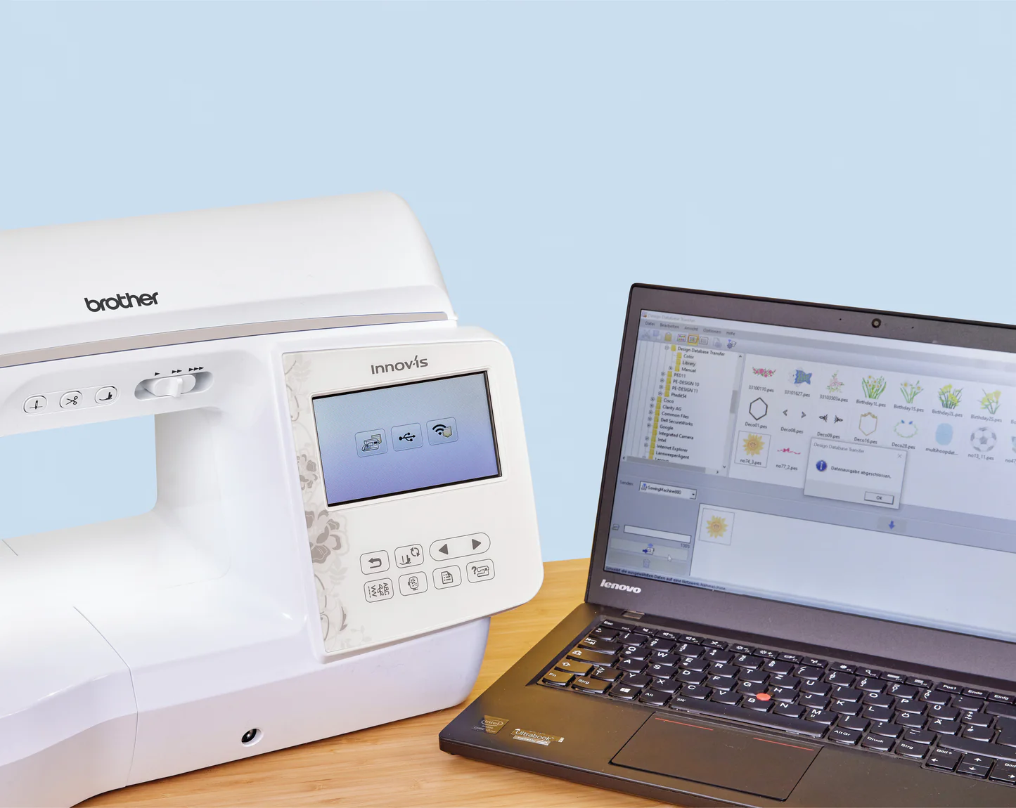 - Wireless LAN & USB Connectivity – Transfer designs wirelessly or with a USB stick.
