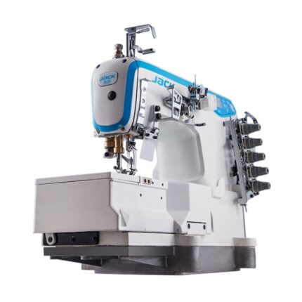 The JIN C1 is a direct-drive, 1-needle lockstitch machine specifically designed for apparel production. Its standout feature is an integrated vertical edge cutter, which allows the machine to sew and trim the fabric edge simultaneously.