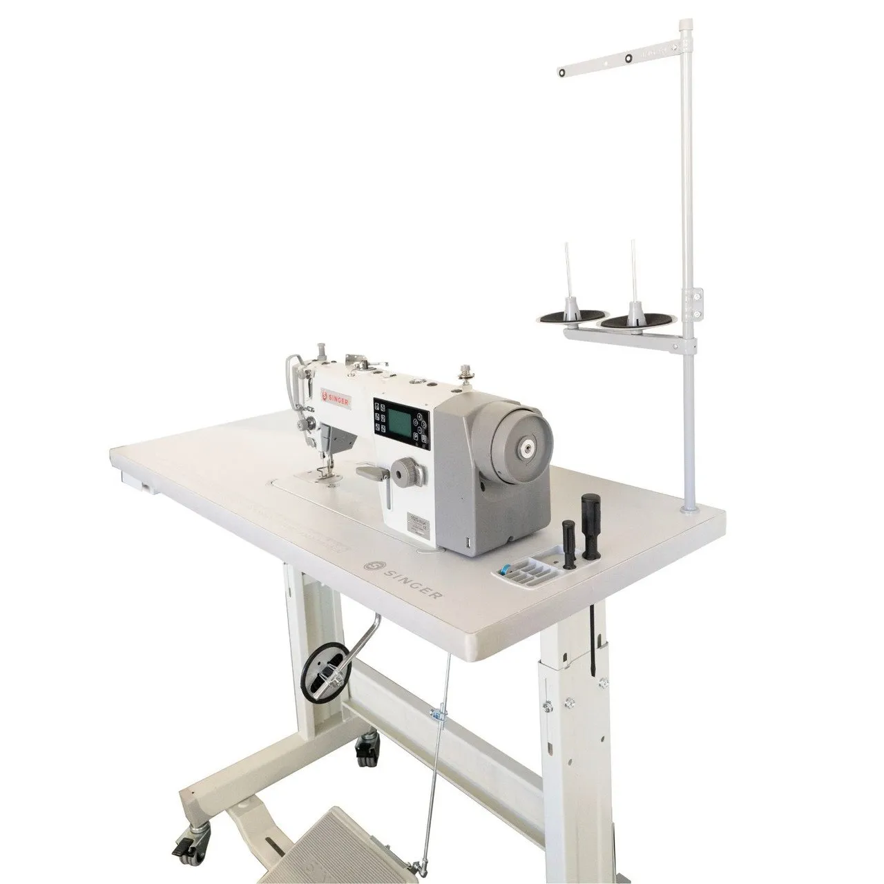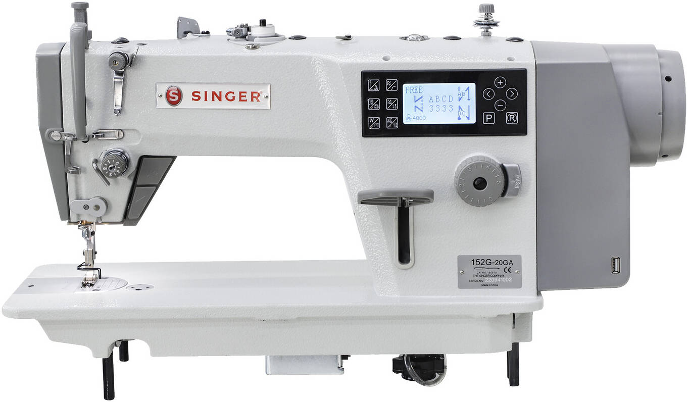 The SINGER 152G-20GA is a single-needle electronic integrated straight lockstitch industrial sewing machine, known for its versatility in handling a wide range of materials from light to heavy fabrics. It features an integrated direct drive motor for energy efficiency and numerous automated functions to enhance productivity.